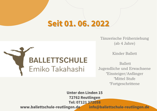 Emiko Takashi übernimmt ab dem 1. Juni 2022 die Leitung der Reutlinger Ballettschule mit langer Traditionen für klassisches Ballett von Renate Mach.